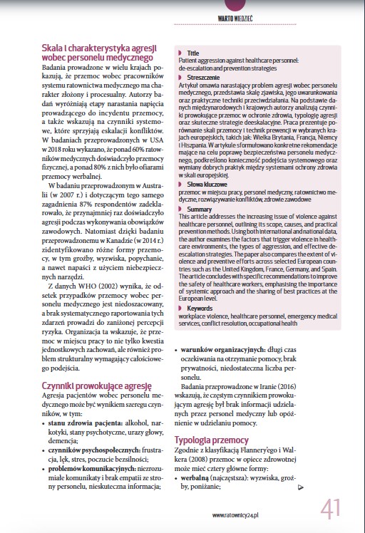 Agresja pacjentów wobec personelu medycznego: strategie deeskalacji i zapobiegania